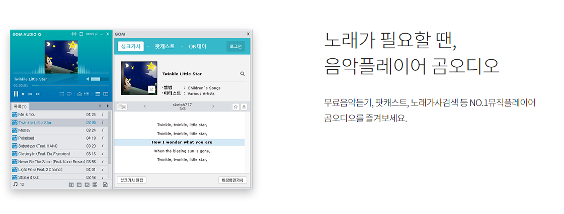 3. 곰오디오는 기본적으로 음악을 재생할 수 있는 플레이어입니다. 무료 음악, 팟캐스트, 노래가사검색등의 기능을 제공합니다.