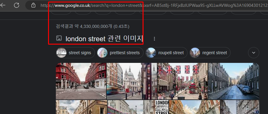 4. 런던 길로 검색한 결과입니다. 한글로 검색해서일까요. 한국 구글과 큰 차이는 없습니다.