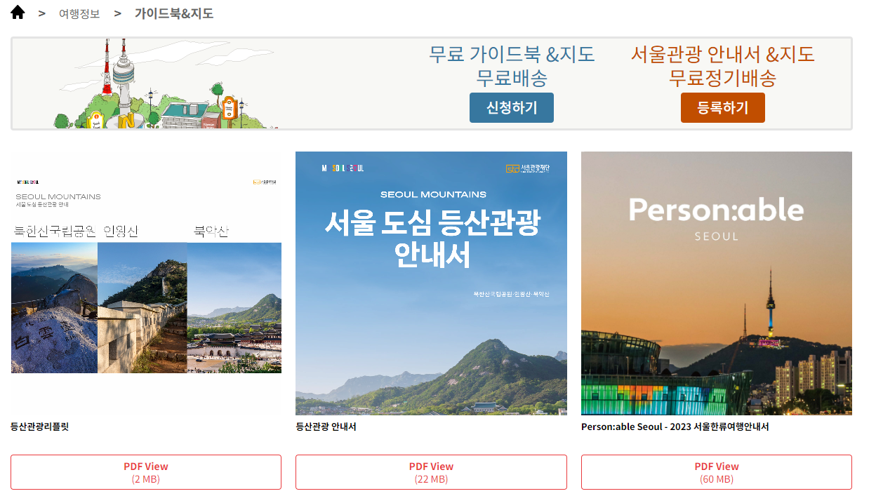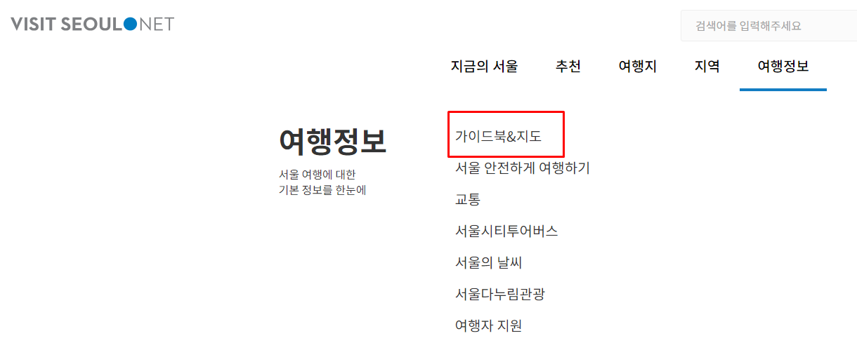 2. 해당 사이트에는 여러 메뉴가 있습니다. 여기서 [여행정보 > 가이드북]으로 선택합니다.