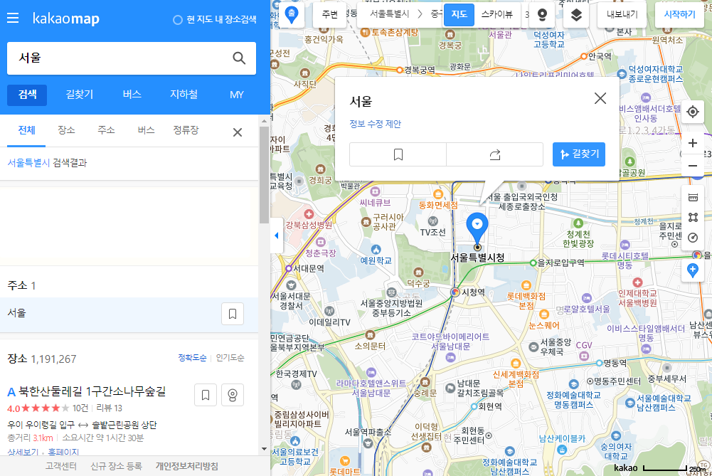 7. 서울 지도를 확대 및 축소하여 원하는 지도 정보를 확인할 수 있습니다.