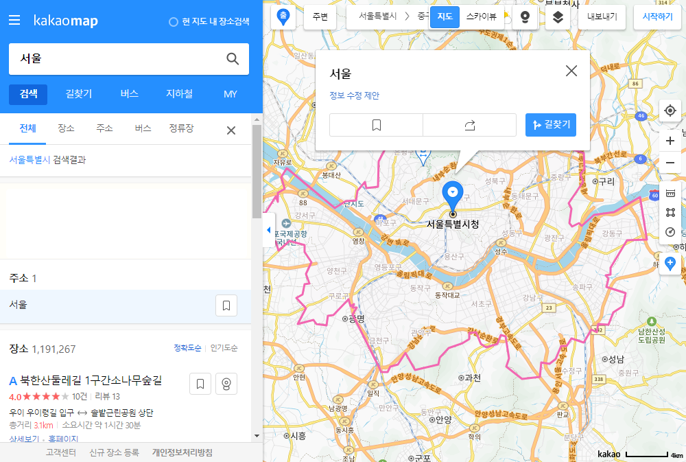 6. 아래 사진과 같이 '서울'을 검색하도록 합니다.