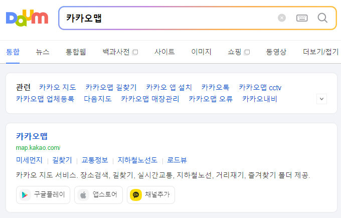 5. 다음으로 인터넷 지도를 활용하는 방법입니다. 인터넷 지도 중, 카카오맵을 이용합니다. 마찬가지로 검색을 진행합니다.