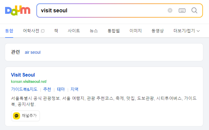 1. 먼저 서울 정보를 확인합니다. visit seoul로 검색을 진행합니다.