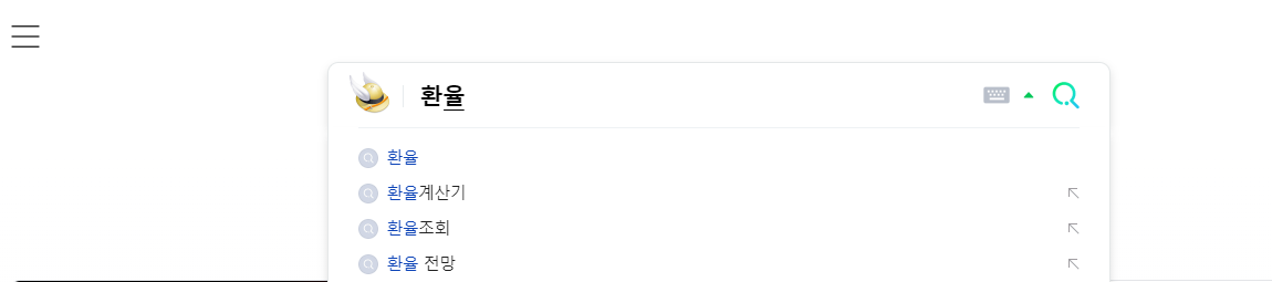 2. 네이버 메인 홈페이지에서 '환율'을 검색합니다.