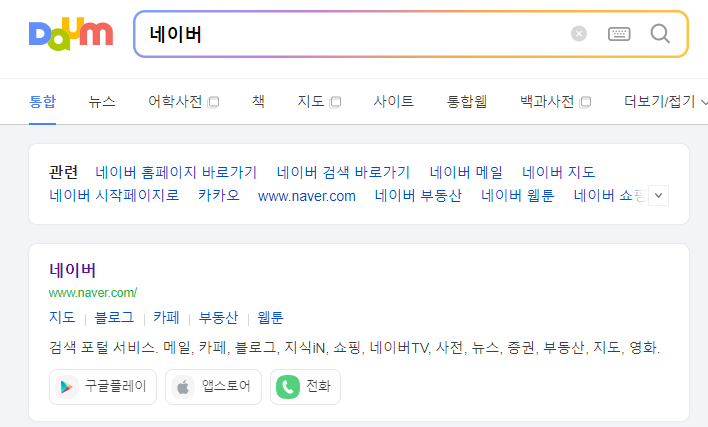 1. 다음 사이트에서 '네이버'를 검색합니다.