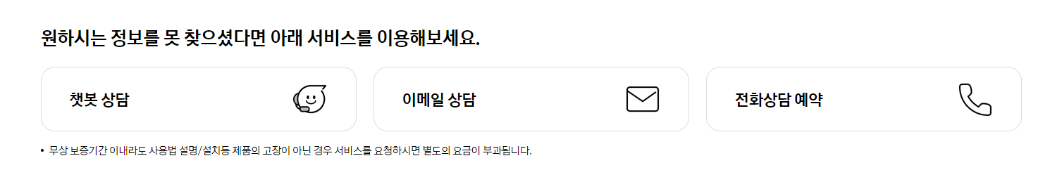 9. 위에서 언급한 방법으로 해결을 못한다면, 3가지의 대안이 있습니다. 챗봇, 이메일, 전화를 이용해 정보를 얻을 수 있습니다.