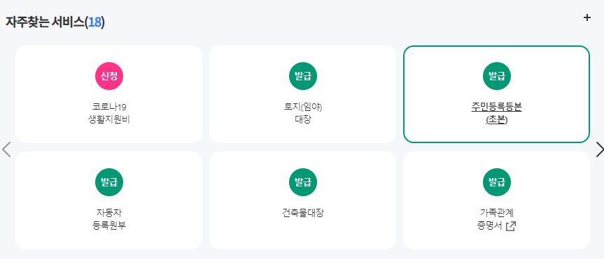 이렇게 찾은 정부 24 홈페이지에 접속합니다. 메뉴에서 기능을 찾을 수 있으며, 검색을 통해 원하는 기능을 찾을 수 있습니다. 개인적으로 [자주찾는 서비스]를 이용하는 방법을 추천합니다. 가장 직관적으로 손쉽게 찾을 수 있기 때문입니다.