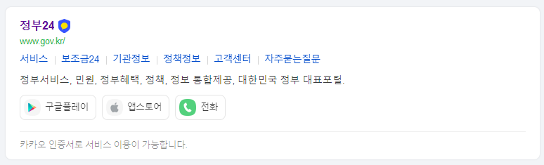 다음 검색을 통해 정부 24홈페이지를 찾을 수 있습니다.