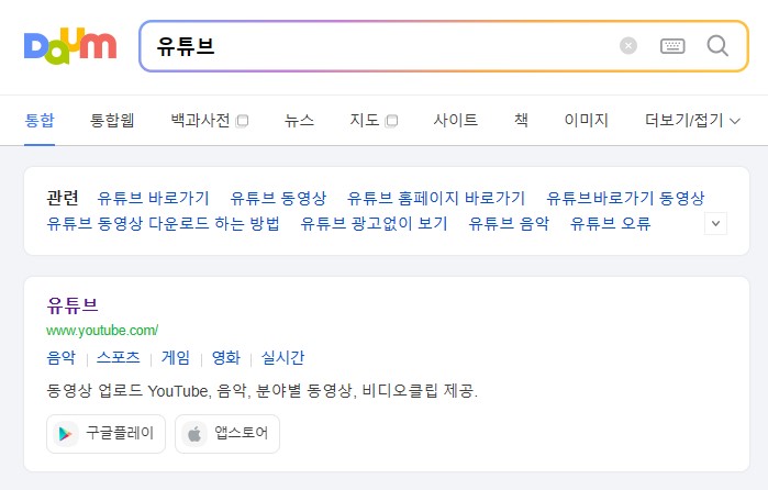 1. 먼저 유튜브 공식 홈페이지를 찾아봅니다. 다음 검색을 통해 쉽게 찾을 수 있는데요. 공식 사이트이기 때문에 가장 먼저 보이는 것을 확인할 수 있습니다. 클릭합니다.