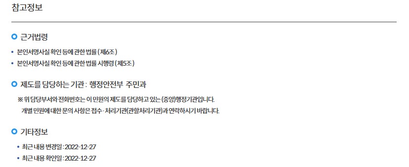 8. 마지막으로 참고 정보로 근거법령, 행정안저부 주민과에서 담당하고 있다고 합니다.