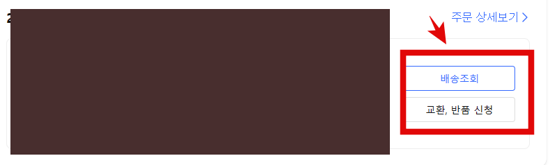 마이쿠팡을 선택하면 다양한 목록을 볼 수 있습니다. 해당 제품에 있는 '배송조회'를 선택합니다.