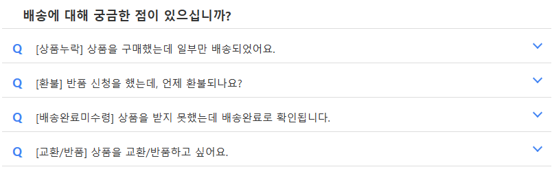 배송에 대한 특이점이 발생했다면 화면 하단에 있는 '배송에 대해 궁금한 점이 있으십니까?'에서 정보를 확인할 수 있습니다.
